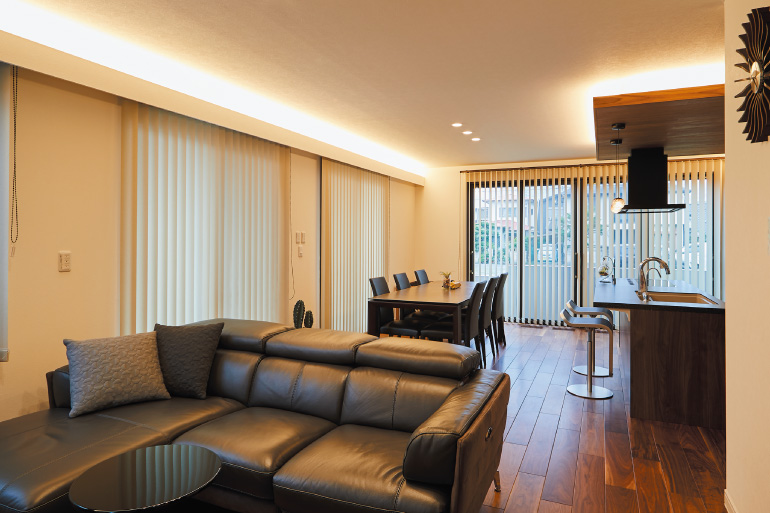 一般の在来工法に比べ、壁や柱、筋交いなどを減らすことができる「ラーメン構造」を採用することで、オープンな大空間を実現しています。そのため家族の成長などの変化に合わせ、間取りを変更する際に大規模なリフォームが必要となりません。また、気軽に間取りの変更を可能とする、可動式の間仕切りや収納を用意しています。